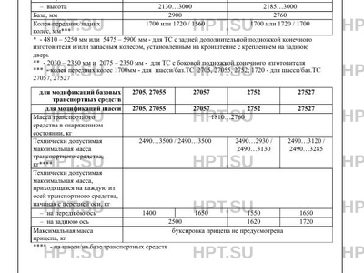 | Колесная база | для модификаций 2705, 27055, 27057: 2900мм. / мод. 2752, 27527: 2760мм. |