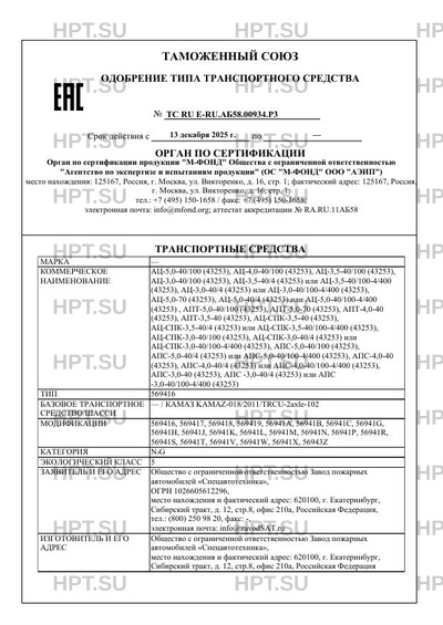 | Номер документа | ТС RU Е-RU.АБ58.00934.Р3 |