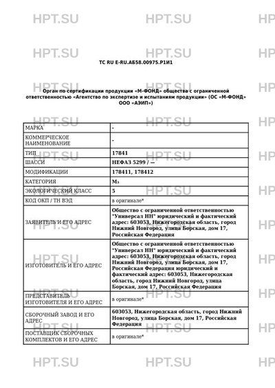 | Номер документа | ТС RU Е-RU.АБ58.00975.Р1И1 |