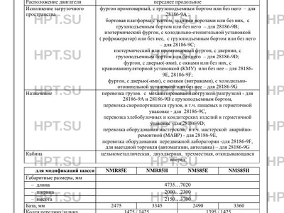 Оборудование ТС устройство вызова экстренных оперативных служб(все), система контроля устойчивости (шасси NMR…) по заказу: подушка безопасности водителя; ремень безопасности с преднатяжителем для водителя; подушка безопасности для бокового пассажира; ремень безопасности с преднатяжителем для бокового пассажира; кондиционер; электростеклоподъемники; наружные зеркала заднего вида с обогревом и/или электроприводом; центральный замок; иммобилайзер; заднее стекло в кабине; внутреннее зеркало; предпусковой подогреватель-отопитель, дополнительный отопитель, тахограф; устройство ограничения максимальной скорости (функцию устройства ограничения максимальной скорости выполняет блок управления двигателем); телематическое устройство, сцепное устройство, спойлер/обтекатель (все); для 28186-9Е - слесарное оборудование, для 28186-9F - лабораторное оборудование; для 28186-9A, 28186-9B, 28186-9C, 28186-9D - грузоподъемный борт, для 28186-9E, 28186-9F - КМУ, для 28186-9G - торговое оборудование, холодильно-отопительная установка для 28186-9C - холодильно-отопительная установка