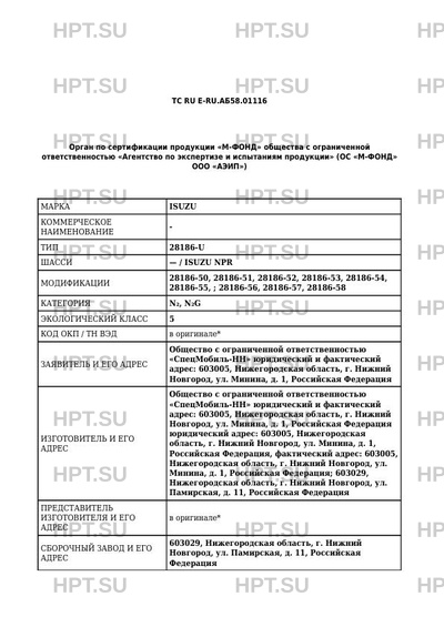 | Марка ТС | ISUZU |