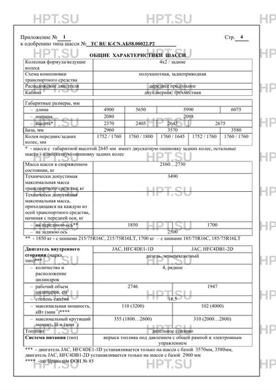 | ДВС | JAC, HFC4DE1-1D JAC, HFC4DB1-2D дизель, четырехтактный JAC, HFC4DB1-2D устанавливается только на шасси с базой 2960 мм |