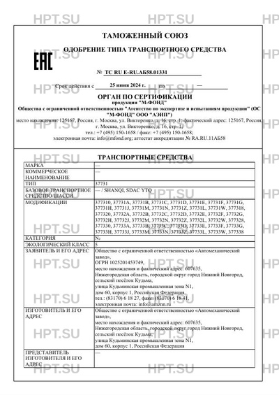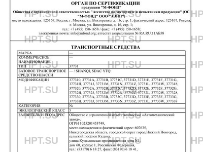 | Оборудование ТС | устройство вызова экстренных оперативных служб с функцией автоматического срабатывания при опрокидывании; противобуксовочная система; электронная система контроля устойчивости; дневные ходовые огни; электрические стеклоподъёмники; иммобилайзер; специальный предупреждающий огонь автожелтого цвета (для 37731G, 37732G, 37733G, 37731H, 37732H, 37733H) по заказу: запасное колесо; защита радиатора; салонный фильтр; сигнализатор движения задним ходом; передние противотуманные фары; USB-разъём; центральный замок с дистанционным управлением; наружные зеркала с электроприводом и обогревом; система кондиционирования воздуха (хладагент R134A); круизконтроль; мультифункциональное рулевое колесо; магнитола; мультимедиа система с 7-дюймовым дисплеем; камера заднего вида; противооткатные башмаки; электроподготовка для установки гидроборта; спойлер на крыше; подогрев сидений; автономный отопитель кабины; выключатель массы; разъём для подключения внешних устройств; подготовка к дооснащению коробкой отбора мощности; коробка отбора мощности; навигационная система; подготовка под систему управления парком автомобилей; переднее буксировочное устройство; цифровой тахограф; стояночный подогреватель двигателя (220В); стояночный подогреватель топливной системы (220В); наружный солнцезащитный козырёк; люк в крыше; аптечка; набор инструментов; вентиляция сидений; искусственная кожа салона; стеллажи; ящики; полки; шкафы; столы; рундуки; отопитель; багажники на крыше; лестницы на крышу; кран -укосина; грузоподъемный борт; внутреннее освещение; перегородка; оборудование для автономного энергоснабжения; холодильная установка (хладагент R134A, R404a); перегородка грузового отсека; витрины; генераторный отсек; лабораторное оборудование; оборудование мастерской; инструмент; верстаки; одно сиденье, используемое исключительно во время стоянки; два сиденья, используемые исключительно во время стоянки; три сиденья, используемые исключительно во время стоянки; четыре сиденья, используемые исключительно во время стоянки; пять сидений, используемые исключительно во время стоянки; шесть сидений, используемые исключительно во время стоянки; семь сидений, используемые исключительно во время стоянки; лебедка; траверса; колесные захваты; колесные упоры; аутригеры; специальный предупреждающий огонь автожелтого цвета; грейферы; захваты; оборудование для перевозки животных; оборудование для временного проживания людей; аварийноспасательное оборудование и инструмент; средство связи; средство освещения; средства индивидуальной защиты; средства оказания первой помощи; бурильно-крановое оборудование; люлька; оборудование для перевозки живой рыбы; оборудования для контроля и жизнеобеспечения живой рыбы; выдвижные лестницы; компрессоры; емкости для перевозки живой рыбы |