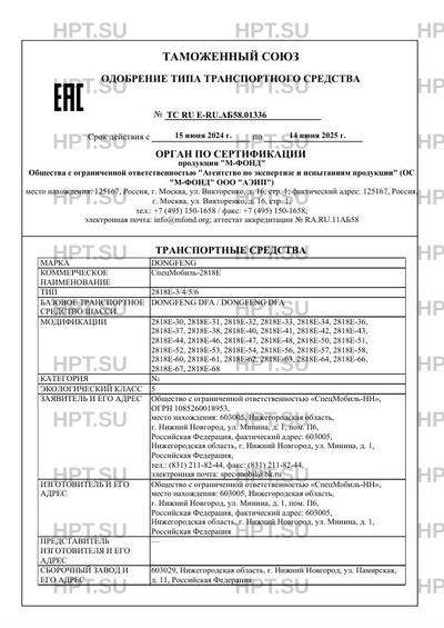 | Предприятие-изготовитель | Общество с ограниченной ответственностью "СпецМобиль-НН", место нахождения: 603005, Нижегородская область, г. Нижний Новгород, ул. Минина, д. 1, пом. П6, Российская Федерация, фактический адрес: 603005, Нижегородская область, г. Нижний Новгород, ул. Минина, д. 1, Российская Федерация |
