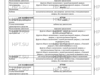 | Исполнение загрузочного пространства | фургон общего назначения с задней распашной дверью; фургон общего назначения с задней распашной дверью, с боковой дверью фургон общего назначения с задней распашной дверью, с грузоподъемным бортом; фургон общего назначения с задней распашной дверью, с боковой дверью, с грузоподъемным бортом; фургон общего назначения с задней распашной дверью, с системой подвижного пола; фургон общего назначения с задней распашной дверью, с боковой дверью, с системой подвижного пола; фургон общего назначения с задней распашной дверью, с грузоподъемным бортом, с системой подвижного пола; фургон общего назначения с задней распашной дверью, с боковой дверью, с грузоподъемным бортом, с системой подвижного пола фургон/модуль с дверьми, с платформой и размещенным на ней оборудованием для перевозки живой рыбы; фургон/модуль с дверьми, с окнами, с платформой и размещенным на ней оборудованием для перевозки живой рыбы; фургон/модуль с дверьми, с платформой, с каркасом и тентом и размещенным на ней оборудованием для перевозки живой рыбы; фургон/модуль с дверьми, с окнами, с платформой, с каркасом и тентом и размещенным на ней оборудованием для перевозки живой рыбы; фургон/модуль с дверьми, с платформой, с откидными боковыми и задним бортами, с высоким передним бортом и размещенным на ней оборудованием для перевозки живой рыбы; фургон/модуль с дверьми, с окнами, с платформой, с откидными боковыми и задним бортами, с высоким передним бортом и размещенным на ней оборудованием для перевозки живой рыбы; фургон/модуль с дверьми, с кузовом, с тентом и задними распашными воротами, размещенным в нем оборудованием для перевозки живой рыбы; фургон/модуль с дверьми, с окнами, с кузовом, с тентом и задними распашными воротами, размещенным в нем оборудованием для перевозки живой рыбы фургон с задней распашной дверью; фургон с боковыми дверьми; фургон с задней распашной дверью, с боковыми дверьми; фургон с задней распашной дверью, с ХОУ (холодильноотопительной установкой); фургон с боковыми дверьми, с ХОУ (холодильно-отопительной установкой); фургон с задней распашной дверью, с боковыми дверьми, с ХОУ (холодильно-отопительной установкой); фургон с задней распашной дверью, с грузоподъемным бортом; фургон с задней распашной дверью, с боковыми дверьми, с грузоподъемным бортом; фургон с задней распашной дверью, с ХОУ (холодильноотопительной установкой), с грузоподъемным бортом; фургон с задней распашной дверью, с боковыми дверьми, с ХОУ (холодильно-отопительной установкой), с грузоподъемным бортом бортовая платформа; бортовая платформа с каркасом и тентом; бортовая платформа с откидными боковыми и задним бортами, с высоким передним бортом; бортовая платформа с откидными боковыми и задним бортами, с высоким передним бортом, с каркасом и тентом; кузов с тентом и задними распашными воротами бортовая платформа, с грузоподъемным бортом; бортовая платформа с каркасом и тентом, с грузоподъемным бортом; бортовая платформа с откидными боковыми и задним бортами, с высоким передним бортом, с грузоподъемным бортом; бортовая платформа с откидными боковыми и задним бортами, с высоким передним бортом, с каркасом и тентом, с грузоподъемным бортом; кузов с тентом и задними распашными воротами, с грузоподъемным бортом; бортовая платформа, с системо
