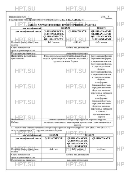 | Оборудование ТС | устройство вызова экстренных оперативных служб, электронная система контроля устойчивости (все); КМУ за кабиной (28183 -76) по заказу: автомагнитола; электростеклоподъемники стекол; кондиционер; устройство ограничения максимальной скорости, обтекатель на кабине (все); грузоподъемный борт (28183 -70, 28183 - 71, 28183 -72); отопительно-холодильная установка (28183-72); перегородка в фургоне, боковая дверь (28183 -70, 28183 -72) |