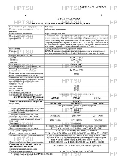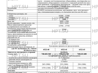 | Базовое ТС / Шасси | КАМАЗ 6522 / КАМАЗ 6522 |