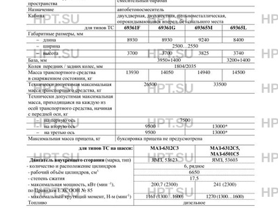 | Тип ТС | Транспортные средства: типа 69361F изготавливаются на шасси МАЗ-6312С3; типа 69… |
