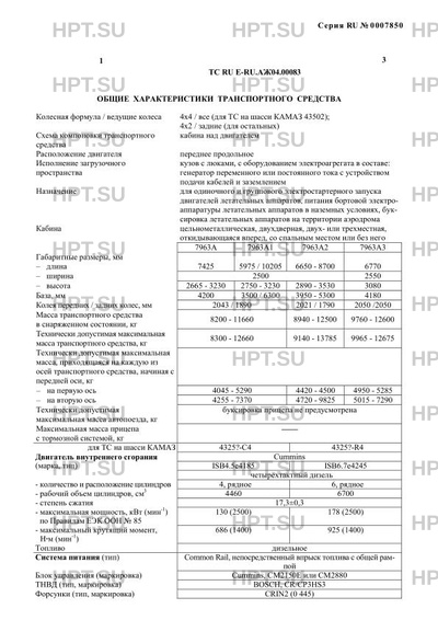 | Тип ТС | Транспортные средства 7963А изготавливаются на шасси КАМАЗ 43253 модификаций 43253-С4, 43253-R4, транспортные средства 7963А1 изготавливаются на шасси КАМАЗ 43255 модификаций 43255-С4, 43255-R4, транспортные средства 7963А2 изготавливаются на шасси КАМАЗ 53605 модификаций 53605-А4, 53605-L4, транспортные средства 7963А3 изготавливаются на шасси КАМАЗ 43502 модификаций 43502-42, 43502-45, 43502-S4. |