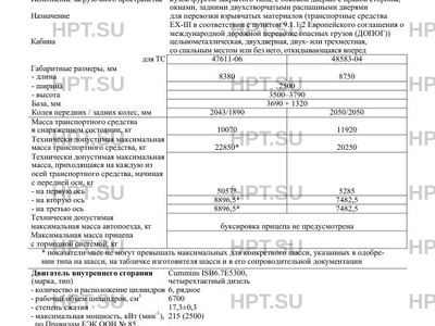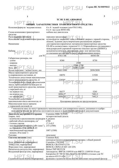 | Дополнительная информация | Транспортные средства 47611-06 изготавливаются на базе шасси КАМАЗ 65115 в модификации 65115-А5. Транспортные средства 48583-04 изготавливаются на базе шасси КАМАЗ 43118 в модификации 43118-А5. В случае фактического превышения значений параметров, указанных в приложении № 5 к техническому регламенту Таможенного союза «О безопасности колесных транспортных средств», для передвижения транспортных средств по территории государств-членов Таможенного союза необходимо оформление специального разрешения. |