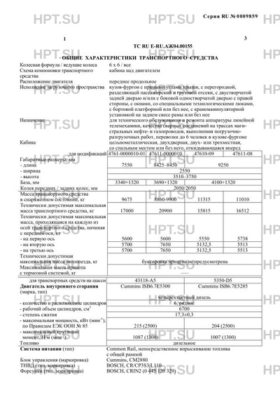 | Дополнительная информация | Транспортные средства 4761 изготавливаются в модификациях 4761-0000010-01, 47610-09. Транспортные средства 47611 изготавливаются в модификациях 47611-08, 47611-0000010 Для изготовления транспортных средств в модификации 4761-0000010-01 применяются модификации шасси КАМАЗ 5350-D5. Для изготовления транспортных средств в модификации 47610-09 применяются модификации шасси КАМАЗ 5350-37. Для изготовления транспортных средств в модификации 47611-08 применяются модификации шасси КАМАЗ 43118-37. Для изготовления транспортных средств в модификации 47611-0000010 применяются модификации шасси КАМАЗ 43118-А5. Для изготовления транспортных средств типа 4761, 47611 применяются шасси, оснащенные устройством вызова экстренных оперативных служб с автоматическим срабатыванием. Транспортные средства не предназначены для перевозки пищевых продуктов и опасных грузов. |