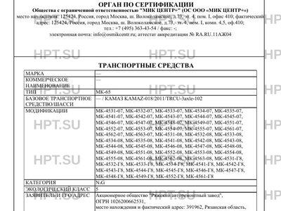 | Тип ТС | МК-65 |