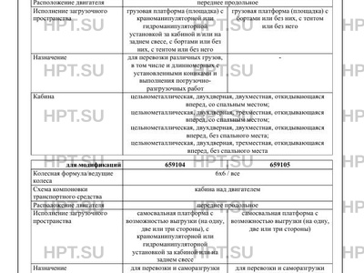 | Исполнение загрузочного пространства | грузовая платформа (площадка) с краноманипуляторной или гидроманипуляторной установкой за кабиной и/или на заднем свесе, с бортами или без них, с тентом или без него грузовая платформа (площадка) с бортами или без них, с тентом или без него самосвальная платформа с возможностью выгрузки (на одну, две или три стороны), с краноманипуляторной или гидроманипуляторной установкой за кабиной или на заднем свесе самосвальная платформа с возможностью выгрузки (на одну, две или три стороны) сортиментовозная платформа с кониками и ограждением кабины, с крано-манипуляторной или гидроманипуляторной установкой за кабиной или на заднем свесе сортиментовозная платформа с кониками и ограждением кабины контейнеровозная платформа (площадка) с краноманипуляторной или гидроманипуляторной установкой за кабиной или на заднем свесе, с бортами или без них контейнеровозная платформа (площадка), с бортами или без них погрузочно-разгрузочное оборудование крюкового типа с краноманипуля-торной или гидроманипуляторной установкой за кабиной погрузочно-разгрузочное оборудование крюкового типа подъемное оборудование с рабочей платформой |
