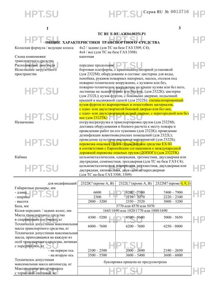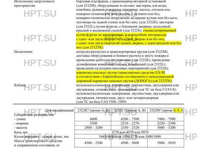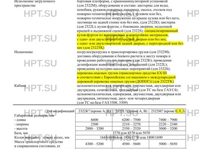 | Дополнительная информация | Транспортные средства 2322К, 2322L, 2322М, 2322S в модификациях 2322К3, 2322К8, 2322L3, 2322М3, 2322М8, 2322S3 изготавливаются на базе шасси и транспортного средства ГАЗ 3308 (модификации 33086). Транспортные средства 2322К, 2322L, 2322М, 2322S в модификациях 2322К2, 2322К7, 2322L2, 2322М2, 2322М7, 2322S2 изготавливаются на базе шасси и транспортного средства ГАЗ 3308 (модификации 33088). Транспортные средства 2322L, 2322М, 2322S в модификациях 2322L1, 2322L5, 2322М1, 2322М5, 2322S1 изготавливаются на базе шасси и транспортного средства ГАЗ 3309 (модификации 3309, 33098). Транспортные средства 2322К, 2322L, 2322М, 2322S в модификациях 2322КА, 2322LА, 2322М9, 2322SA изготавливаются на базе шасси и транспортного средства ГАЗ C4 (модификации С41R11, С41R13, С41R16, С41R31, С41R33, С41R36). Транспортные средства 2322К, 2322L, 2322М, 2322S в модификациях 2322КВ, 2322LВ, 2322М0, 2322SB изготавливаются на базе шасси и транспортного средства ГАЗ C4 (модификации С42R33, С42R36). Транспортные средства 2322М, 2322S, 2322T в модификациях 2322МJ, 2322SC, 2322ТK изготавливаются на базе шасси и транспортного средства ГАЗ C4 (модификации С41RB3). Коммерческое наименование автомобиль бортовой с КМУ используется для транспортных средств типа 2322М; автоцистерна пожарная АЦ ?,?-40 (33086), АЦ ?,?-40 (33088), АЦ ?,?-40 (С4?R??) – для 2322К; автомобиль дезинфекционный – для 2322L; автоклуб – для 2322S; автомобиль для перевозки опасных грузов – для 2322T. |