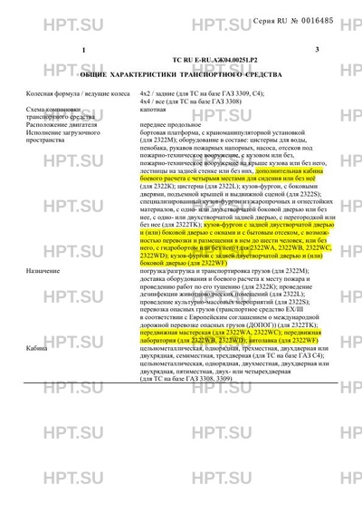 | Дополнительная информация | Транспортные средства 2322К, 2322L, 2322М, 2322S в модификациях 2322К3, 2322К8, 2322L3, 2322М3, 2322М8, 2322S3 изготавливаются на базе шасси и транспортного средства ГАЗ 3308 (модификации 33086). Транспортные средства 2322К, 2322L, 2322М, 2322S в модификациях 2322К2, 2322К7, 2322L2, 2322М2, 2322М7, 2322S2 изготавливаются на базе шасси и транспортного средства ГАЗ 3308 (модификации 33088). Транспортные средства 2322L, 2322М, 2322S в модификациях 2322L1, 2322L5, 2322М1, 2322М5, 2322S1 изготавливаются на базе шасси и транспортного средства ГАЗ 3309 (модификации 3309, 33098). Транспортные средства 2322К, 2322L, 2322М, 2322S в модификациях 2322КА, 2322LА, 2322М9, 2322SA изготавливаются на базе шасси и транспортного средства ГАЗ C4 (модификации С41R11, С41R13, С41R16, С41R31, С41R33, С41R36). Транспортные средства 2322К, 2322L, 2322М, 2322S в модификациях 2322КВ, 2322LВ, 2322М0, 2322SB изготавливаются на базе шасси и транспортного средства ГАЗ C4 (модификации С42R33, С42R36). Транспортные средства 2322К, 2322М, 2322S, 2322T, 2322W в модификациях 2322КС, 2322КD, 2322МJ, 2322SC, 2322ТK, 2322WA, 2322WB, 2322WC, 2322WD, 2322WF изготавливаются на базе шасси и транспортного средства ГАЗ C4 (модификации С41RB3). Коммерческое наименование автомобиль бортовой с КМУ используется для транспортных средств типа 2322М; автоцистерна пожарная АЦ ?,?-40 (33086), АЦ ?,?-40 (33088), АЦ ?,?-40 (С4?R??) – для 2322К; автомобиль с дезинфекционной установкой – для 2322L; автоклуб – для 2322S; автомобиль для перевозки опасных грузов – для 2322T; передвижная мастерская, передвижная лаборатория, автолавка – для 2322W. |