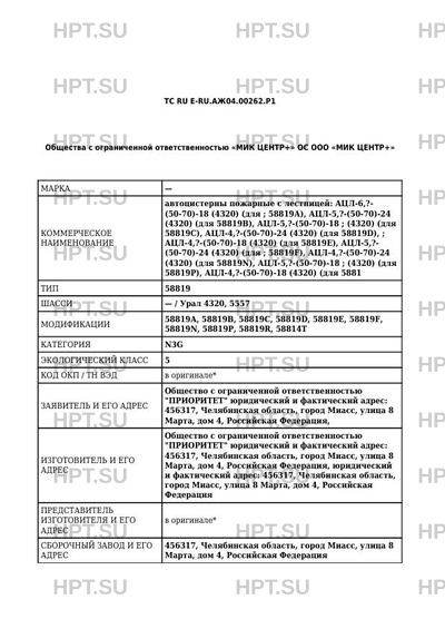ТС RU E-RU.АЖ04.00262.Р1