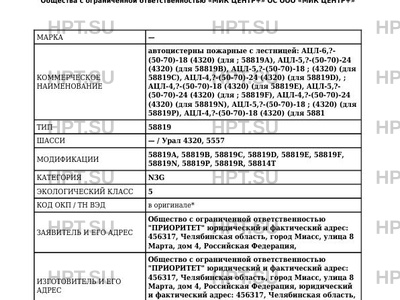 | Коммерческое наименование | автоцистерны пожарные с лестницей: АЦЛ-6,?-(50-70)-18 (4320) (для 58819А), АЦЛ-… |