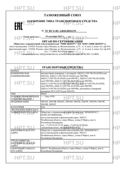 | Коммерческое наименование | автоцистерны пожарные с лестницей: АЦЛ-6,?-(50-70)-18 (4320) (для 58819А), АЦЛ-… |