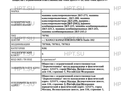 | Коммерческое наименование | машина каналопромывочная ДКТ-275, машина каналопромывочная ; ДКТ-280, машина каналопромывочная ДКТ-290, машина ; каналопромывочная ДКТ-290.2, машина комбинированная ДКТ-225, машина комбинированная ДКТ-225.1, машина комбинированная ДКТ-245, машина комбинированная ДКТ-245.2 |
