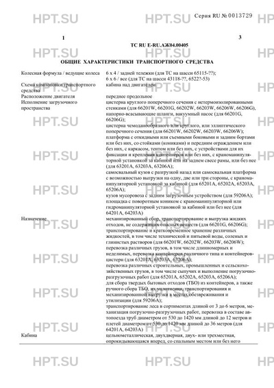 | Дополнительная информация | Транспортные средства 63201А, 64201А, 65201A, 66201G, 66201W изготавливаются на базе шасси КАМАЗ 43118 модификаций 43118-А5, 43118-50. Транспортные средства 59206А, 63206А, 65206А, 66206G, 66206W изготавливаются на базе шасси КАМАЗ 65115 модификаций 65115-А5, 65115-50. Транспортные средства 65202А, 66202W изготавливаются на базе шасси КАМАЗ 65222 модификации 65222-53. Транспортные средства 63203А, 64203А, 65203А, 66203W, изготавливаются на базе шасси КАМАЗ 65224 модификации 65224-53. Коммерческое наименование автоцистерна используется для транспортных средств типов 66201G, 66206G, 66201W, 66202W, 66203W, 66206W. Коммерческое наименование автомобиль грузовой используется для транспортных средств типов 63201А, 63203А, 63206А. Коммерческое наименование автомобиль самосвал используется для транспортных средств типа 65201А, 65202А, 65203А, 65206А. Коммерческое наименование автомобиль мусоровоз используется для транспортных средств типа 59206А. Коммерческие наименования автомобиль тягач лесовозный и автомобиль тягач трубоплетевозный используются для транспортных средств типа 64201А, 64203А. В случае фактического превышения транспортным средством ограничений, установленных приложением № 5 к техническому регламенту Таможенного союза «О безопасности колесных транспортных средств», для его передвижения по территории государств-членов Евразийского экономического союза необходимо оформление специального разрешения. Транспортные средства не предназначены для перевозки опасных грузов. |