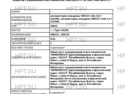 Коммерческое наименование автоцистерна пожарная 58812U (АЦ-3,0-? (43206), автоцистерна пожарная 58812V (А…