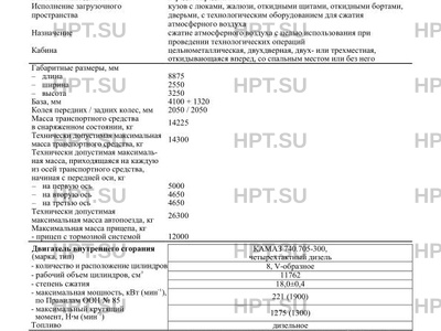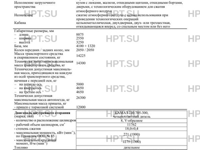 | Исполнение загрузочного пространства | кузов с люками, жалюзи, откидными щитами, откидными бортами, дверьми, с технологическим оборудованием для сжатия атмосферного воздуха |