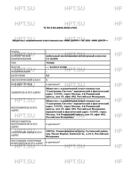 | Номер документа | ТС RU Е-RU.АЖ04.00581.Р1И1 |
