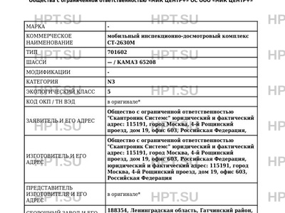 | Коммерческое наименование | мобильный инспекционно-досмотровый комплекс СТ-2630М, 701602 |