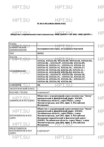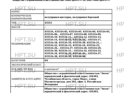 | Коммерческое наименование | полуприцеп-цистерна, полуприцеп бортовой 43553 |