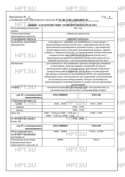 | Тип ТС | Показатели масс не могут превышать максимальных для конкретного шасси, указанных в одобрении типа шасси, на табличке изготовителя шасси и в его сопроводительной документации. Транспортные средства не предназначены для перевозки пищевых продуктов и опасных грузов. Допускается использовать шасси КАМАЗ с применявшимся ранее обозначениями типа 43118 в качестве базовых шасси. Перевод буквенно-цифровых обозначений модификаций шасси в вариант для формализованного (цифрового) кода продукции в процессе производства и отгрузки в соответствии с системой SAP (System Analysis and Program Development), применяемой изготовителем шасси: 43118-A5 - 43118-48 43118-RR - 43118-76 43118-RS - 43118-80 Соответствия маркировок двигателей: Двигатель Маркировка на блоке цилиндров Cummins ISB6.7E5300, КАМАЗ 667.511-300 отсутствует КАМАЗ 740.705-300 740705 КАМАЗ 820.92-300 - 820920 или 820620 Cummins, ISL340 50 отсутствует Cummins, ISL360 50 отсутствует Коммерческое наименование Шасси (модификация) 47611-0000010 43118-50, 43118-А5, 43118-RR, 43118-RS. 47611-08 43118-37 |