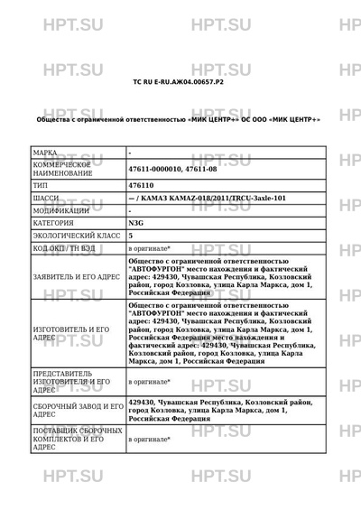 | Номер документа | ТС RU Е-RU.АЖ04.00657.Р2 |