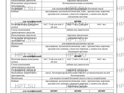 | Максимальная масса | для модификаций 603403, 603404: 25000…40000кг. / мод. 603405: 21500…36000кг. |