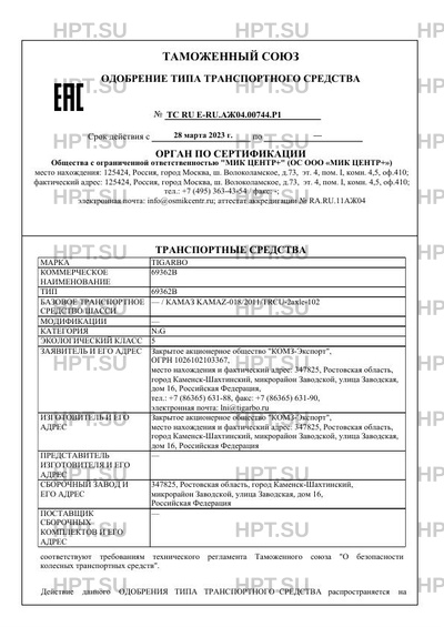 Номер документа ТС RU Е-RU.АЖ04.00744.Р1