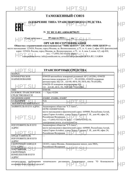 | Номер документа | ТС RU Е-RU.АЖ04.00790.Р3 |