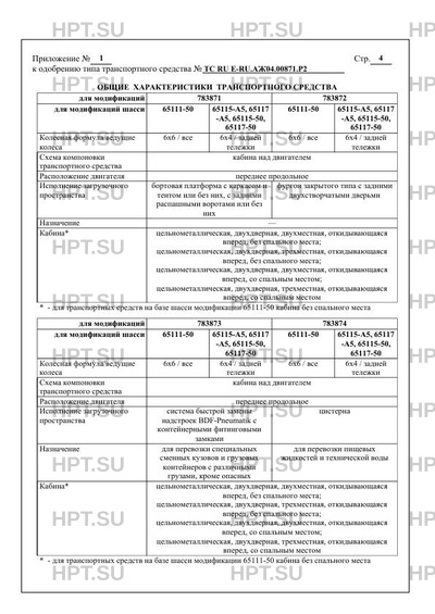 Оборудование ТС устройство ограничения максимальной скорости (функцию устройства ограничения максимальной скорости выполняет электронный блок управления двигателем), устройство вызова экстренных оперативных служб с функцией автоматического срабатывания при опрокидывании; два проблесковых маячка оранжевого цвета, бесшовные кабелепроводы защиты электропроводки, заземляющая цепочка и металлический штырь для защиты от статических и атмосферных электрических разрядов, искрогасительная сетка и теплозащитный экран на выпускной трубе глушителя, защита топливных баков и аккумуляторных батарей, огнетушители, аппаратура спутниковой навигации (для 783875); по заказу: (комплектация шасси) предпусковой подогреватель; кондиционер (хладагент R134a); передние противотуманные фары (для вариантов исполнений транспортных средств, изготовленных на ООН № 48-05); специальные предупреждающие огни; устройства и элементы конструкции для обеспечения возможности перевозки опасных грузов