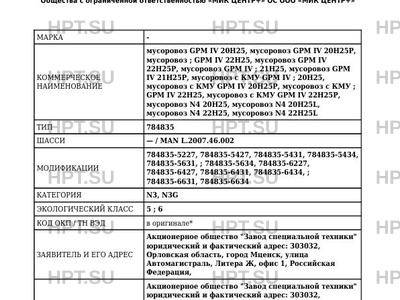 | Коммерческое наименование | мусоровоз GPM IV 20H25, мусоровоз GPM IV 20H25P, мусоровоз, GPM IV 22H25, мусоровоз GPM IV 22H25P, мусоровоз GPM IV, 21H25, мусоровоз GPM IV 21H25P, мусоровоз с КМУ GPM IV, 20H25, мусоровоз с КМУ GPM IV 20H25P, мусоровоз с КМУ, GPM IV 22H25, мусоровоз с КМУ GPM IV 22H25P, мусоровоз N4 20H25, мусоровоз N4 20H25L, мусоровоз N4 22H25, мусоровоз N4 22H25L, 784835 |