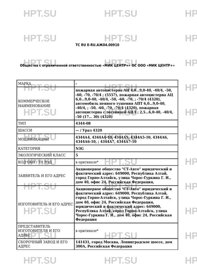 | Номер документа | ТС RU Е-RU.АЖ04.00910 |