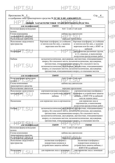 Оборудование ТС устройство вызова экстренных оперативных служб с функцией автоматического срабатывания при опрокидывании; устройство ограничения максимальной скорости (функцию устройства ограничения максимальной скорости выполняет электронный блок управления двигателем); устройства освещения рабочей зоны; устройства увязки воза (для 336939, 336940); один или два проблесковых маячка автожелтого цвета (для 336945, 336934); бесшовные кабелепроводы защиты электропроводки, искрогаситель, защита топливных баков, выключатель массы, система пожаротушения моторного отсека, защита аккумуляторных батарей (для 336934) по заказу: предпусковой подогреватель; кондиционер; передние противотуманные фары (для транспортных средств на базе шасси, имеющих официальное утверждение на основании Правил ООН № 48-05); бак для воды; тент; обтекатель на крыше кабины