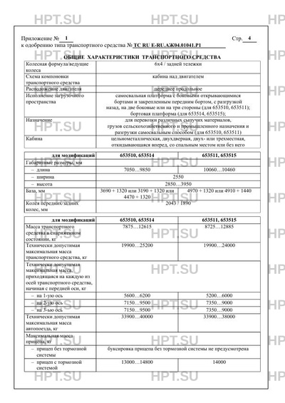 | Исполнение загрузочного пространства | самосвальная платформа с боковыми открывающимися бортами и закрепленным передним бортом, с разгрузкой назад, на две боковые или на три стороны (для 653510, 653511); бортовая платформа (для 653514, 653515) |