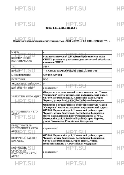 | Коммерческое наименование | установка насосная для цементирования скважин СИН35, установка; насосная для ки… |