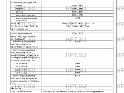 | Оборудование ТС | запасное колесо, противооткатные башмаки; по заказу: огнетушитель, дополнительная защита кабелей электропроводки |