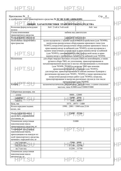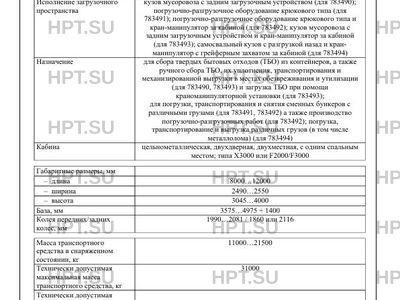 | Исполнение загрузочного пространства | кузов мусоровоза с задним загрузочным устройством (для 783490); погрузочно-разгрузочное оборудование крюкового типа (для 783491); погрузочно-разгрузочное оборудование крюкового типа и кран-манипулятор за кабиной (для 783492); кузов мусоровоза с задним загрузочным устройством и кран-манипулятор за кабиной (для 783493); самосвальный кузов с разгрузкой назад и кранманипулятор с грейферным захватом за кабиной (для 783494) р за кабиной (для 783492); кузов мусоровоза с задним загрузочным устройством и кран-манипулятор за кабиной (для 783493) |