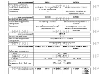 Модификации 845822, 845824, 845825, 845827, 845829, 84582A, 84582B, 84582C, 84582D