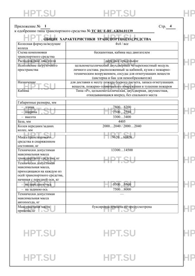 | Оборудование ТС | централизованная система регулирования давления воздуха в шинах, устройство ограничения максимальной скорости (функцию устройства ограничения максимальной скорости выполняет электронный блок управления двигателем), дневные ходовые огни, устройство вызова экстренных оперативных служб с автоматическим срабатыванием при опрокидывании; цистерна для воды, пенобак, комплект пожарно-технического вооружения (ПТВ) и аварийноспасательного оборудования (АСО), проблесковые маяки синего цвета, сигнальная громкоговорящая установка (СГУ),противотуманные фары, фары-искатели по заказу: предпусковой подогреватель двигателя, электрическая лебедка, кондиционер |
