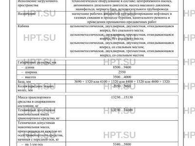 | Исполнение загрузочного пространства | технологическое оборудование в составе: центробежного насоса, автономного дизельного двигателя, насоса высокого давления, манифольда, мерного бака, вспомогательного трубопровода |