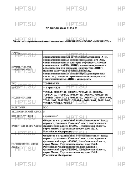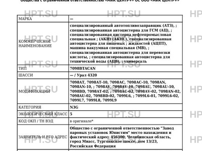 | Коммерческое наименование | специализированный автотопливозаправщик (АТЗ); специализированная автоцистерна … |