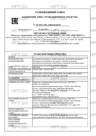 Базовое ТС / Шасси FOTON M4L / FOTON M4L
