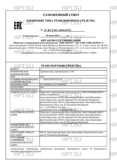 | Номер документа | ТС RU Е-RU.АЖ04.01323 |