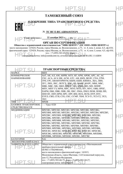 Исполнение загрузочного пространства для MPZ1B1, MPZ1B2, MPZ1B3, MPZ1B4, MPZ1BE, MPZ1BG, MPZ1BH, MPZ1BJ: фургон с прямыми или скошенными углами крыши, с выступом в передней части кузова или без него, с внутренней перегородкой, с окнами, с боковыми и задними дверьми, со специальными технологическими люками, с задней площадкой или без нее, с ограждением крыши или без него, с пассажирскими местами для перевозки бригады от 1 до 6 человек или без них; для MPZ2B1, MPZ2B2, MPZ2B3, MPZ2B4, MPZ2B5, MPZ2BC, MPZ2BD, MPZ2BE, MPZ2BG, MPZ2BH, MPZ2BJ, MPZ2BK, MPZ9B1, MPZ9B2, MPZ9B3, MPZ9B4, MPZ9B5, MPZ9BC, MPZ9BD, MPZ9BE, MPZ9BG, MPZ9BH, MPZ9BJ, MPZ9BK: фургон постоянного или переменного объема, с прямыми или скошенными углами крыши, с выступом в передней части кузова или без него, с внутренними перегородками или без них, с задними и/или боковыми дверьми, с окнами; со специальными технологическими люками, с задней площадкой или без нее, с ограждением крыши или без него, с пассажирскими местами для перевозки бригады от 1 до 6 человек или без них; для MPZCB1, MPZCB2, MPZCB3, MPZCB4, MPZCB5, MPZCBE, MPZCBG, MPZCBH, MPZCBJ, MPZCBK: фургон, с прямыми или скошенными углами крыши, с внутренней перегородкой или без нее, с боковыми и/или задними дверьми, с окнами, со специальными технологическими люками, с ограждением крыши или без него, с бортовой платформой и краноманипуляторной установкой на заднем свесе, с пассажирскими местами для перевозки бригады от 1 до 6 человек или без них; для MPZDB4, MPZDBJ, MPZDBK: фургон с прямыми или скошенными углами крыши, с внутренней перегородкой или без нее, с боковыми и/или задними дверьми, с окнами, со специальными технологическими люками, с ограждением крыши или без него, с краноманипуляторной установкой на заднем свесе, с пассажирскими местами для перевозки бригады от 1 до 6 человек или без них; для MPZEB4, MPZEBJ: фургон с прямыми или скошенными углами крыши, с внутренней перегородкой или без нее, с боковыми и/или задними дверьми, с окнами, со специальными технологическими люками, с ограждением крыши или без него, с задней площадкой или без нее, с краноманипуляторной установкой за кабиной, с пассажирскими местами для перевозки бригады от 1 до 6 человек или без них; для MPZJB1: краноманипуляторная установка, грузовая платформа с тентом или без него, с технологическими отсеками или без них, транспортировочное устройство; для MPZ4B1, MPZ4B2, MPZ4B3, MPZ4B4, MPZ4BE, MPZ4BG, MPZ4BH, MPZ4BJ, MPZ5B1, MPZ5B2, MPZ5B3, MPZ5B4, MPZ5BE MPZ5BG, MPZ5BH, MPZ5BJ: специализированный фургон с прямыми или скошенными углами крыши, с внутренней перегородкой или без нее, с боковыми и/или задними дверьми, с окнами, со специальными технологическими люками, с задней площадкой или без нее; для MPZ7B4, MPZ7BJ: изотермический фургон с боковыми дверьми или без них, с задними дверьми или без них, с продольными или поперечными, стационарными или с подъемно-сдвижными перегородками или без них