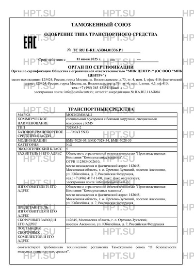 | Номер документа | ТС RU Е-RU.АЖ04.01336.Р1 |